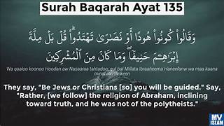أَمْ كُنتُمْ شُهَدَآءَ إِذْ حَضَرَ يَعْقُوبَ ٱلْمَوْتُ إِذْ قَالَ لِبَنِيهِ مَا تَعْبُدُونَ مِنۢ بَعْدِى قَالُوا۟ نَعْبُدُ إِلَـٰهَكَ وَإِلَـٰهَ ءَابَآئِكَ إِبْرَٰهِـۧمَ وَإِسْمَـٰعِيلَ وَإِسْحَـٰقَ إِلَـٰهًۭا وَٰحِدًۭا وَنَحْنُ لَهُۥ مُسْلِمُونَ ١٣٣ تِلْكَ أُمَّةٌۭ قَدْ خَلَتْ ۖ لَهَا مَا كَسَبَتْ وَلَكُم مَّا كَسَبْتُمْ ۖ وَلَا تُسْـَٔلُونَ عَمَّا كَانُوا۟ يَعْمَلُونَ ١٣٤ وَقَالُوا۟ كُونُوا۟ هُودًا أَوْ نَصَـٰرَىٰ تَهْتَدُوا۟ ۗ قُلْ بَلْ مِلَّةَ إِبْرَٰهِـۧمَ حَنِيفًۭا ۖ وَمَا كَانَ مِنَ ٱلْمُشْرِكِينَ ١٣٥